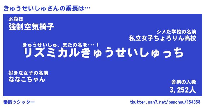 | 肩書あだ名 | 『きゅうせいしゅ店長』 |
