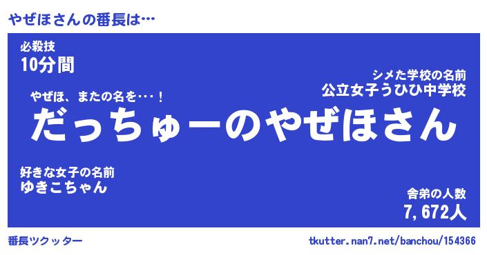 | 伝説のあだ名 | 『伝説のスナイパーやぜほ』 |