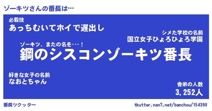 | 意味不明あだ名 | 『ペロリンゾーキツ』『永久保存ゾーキツ』 |
