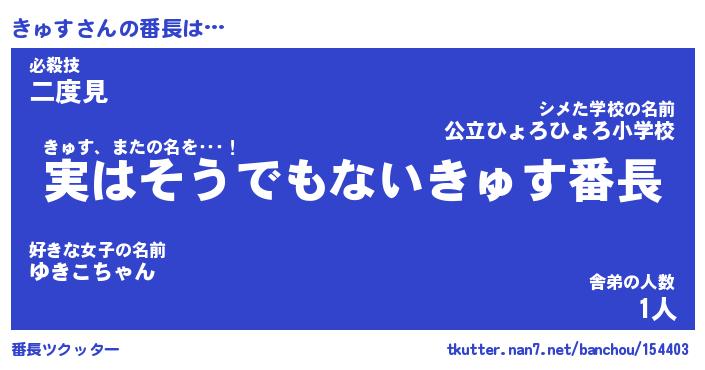 | ヒーロー風カッコイイあだ名 | 『スーパーキュス』『ウルトラきゅすマン』 |