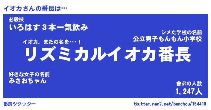 | 意味不明あだ名 | 『ペロリンイオカ』『イオカフォーエバー』 |