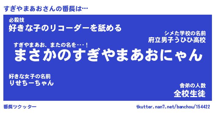 | 肩書あだ名 | 『すぎやまあお御曹司』 |