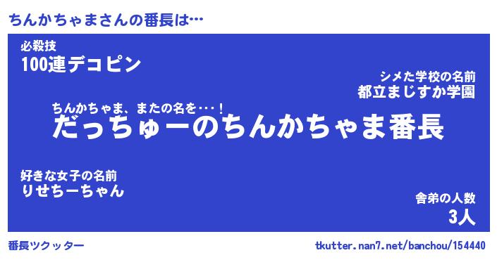 | ヒーロー風カッコイイあだ名 | 『スーパーチンカチャマ』『魔戒騎士チン』 |