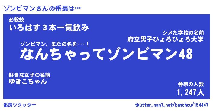 | ファンタジー風あだ名 | 『ゾンフェル』『エターナルゾンビマンー』 |