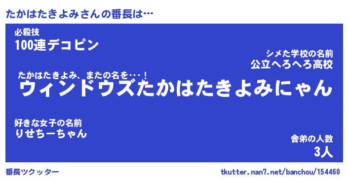 | 2回繰り返すあだ名 | 『たかたか』『たたかか』『おやおや』 |