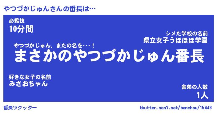 | 2回繰り返すあだ名 | 『やつやつ』『ややつつ』『あんあん』 |