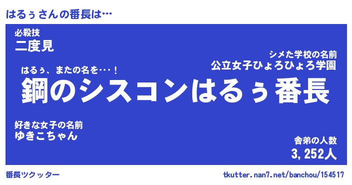 | 伝説のあだ名 | 『封印されしスナイパーはるぅ』 |