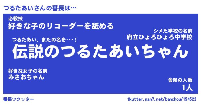 | ファンタジー風あだ名 | 『ツルフェル』『エターナルツルタアイー』 |