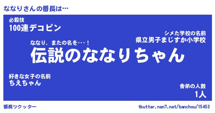 | ヒーロー風カッコイイあだ名 | 『スーパーナナリ』『ウルトラななりマン』 |