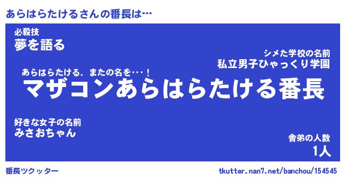 | ツイッター | あらはらたけるさんのツイッターID『namakemono_kun』 |