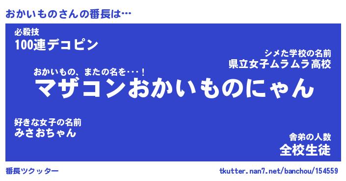 | 男性向けラノベタイトル風あだ名 | 『オカイモノアートオンライン』 |