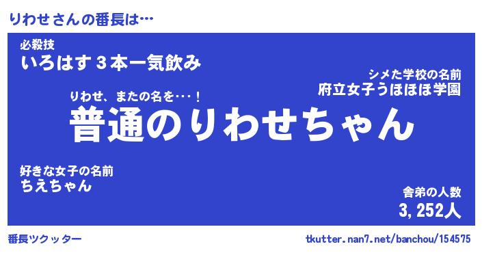 | 意味不明あだ名 | 『ペロリンりわせ』『りわせフォーエバー』 |