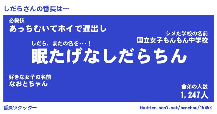 | 意味不明あだ名 | 『ペロリンしだら』『しだらフォーエバー』 |