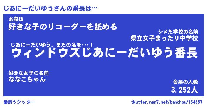 | 男性向けラノベタイトル風あだ名 | 『じあにーだいゆうの憂鬱』 |
