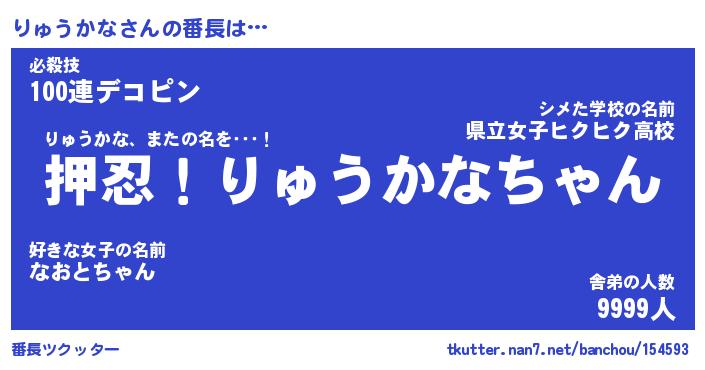 | 猫の名前『りゅうかなーにゃん』性別『雄』 |