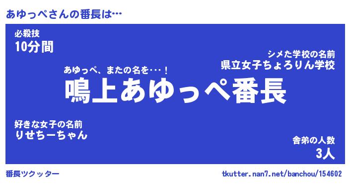 | 2回繰り返すあだ名 | 『あゆあゆ』『ああゆゆ』『なあなあ』 |