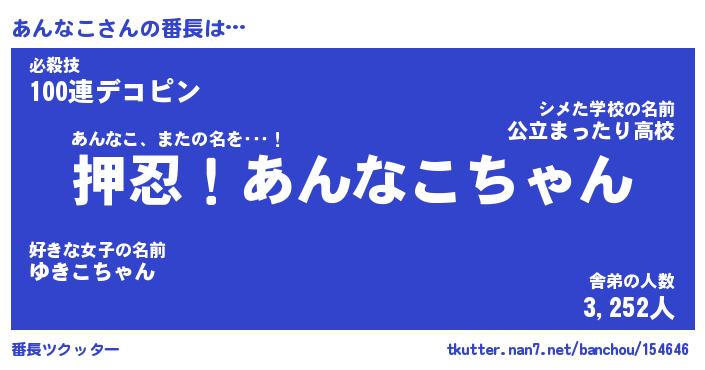 | 伝説のあだ名 | 『封印されしスナイパーあんなこ』 |