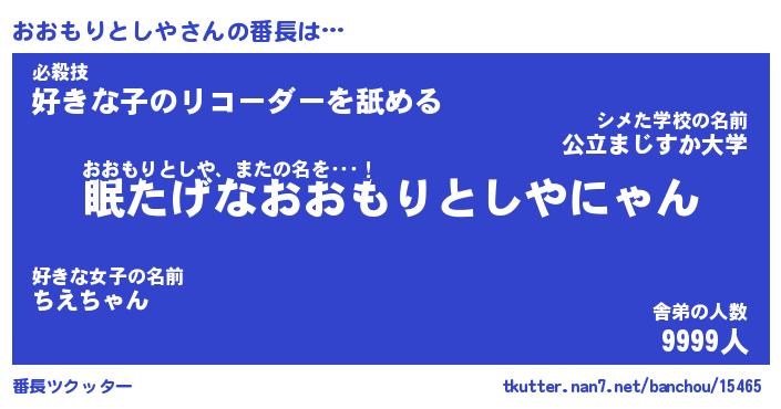 | 伝説のあだ名 | 『封印されし竜騎士おおもりとしや』 |