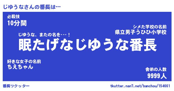 | ファンタジー風あだ名 | 『ジユフェル』『エターナルジユウナー』 |