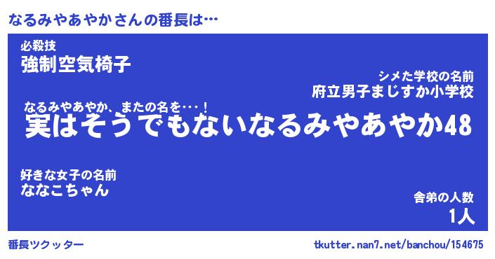 | 肩書あだ名 | 『なるみやあやか御曹司』 |