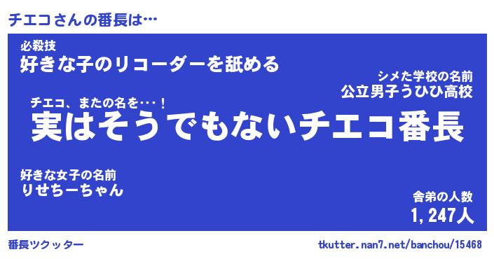 | ヒーロー風カッコイイあだ名 | 『スーパーチエコ』『ウルトラチエコマン』 |