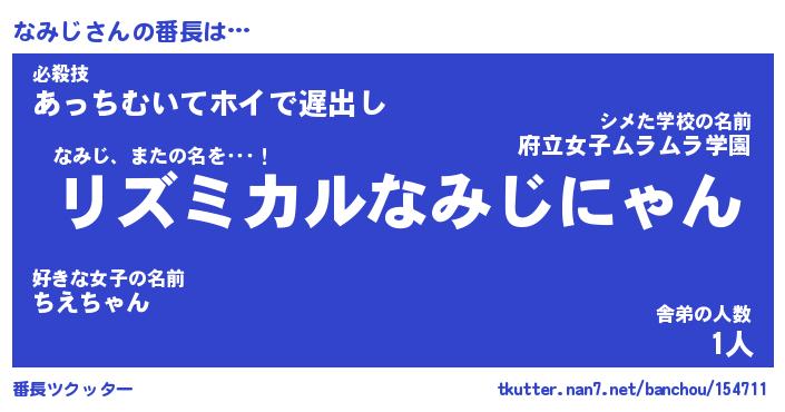 | ヒーロー風カッコイイあだ名 | 『スーパーナミジ』『ウルトラなみじマン』 |