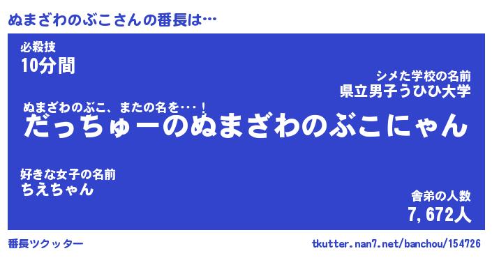 | ピコ太郎風あだ名 | 『ヌコ史郎』『ピヌ六郎』『ヌマ八郎』 |