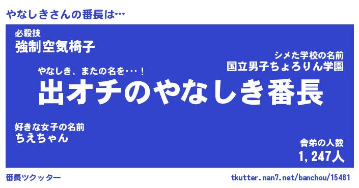 | 伝説のあだ名 | 『伝説のスナイパーやなしき』 |