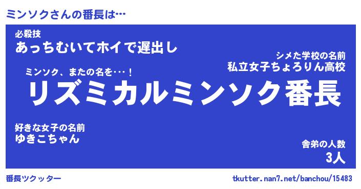 | ファンタジー風あだ名 | 『ミンフェル』『エターナルミンソクー』 |