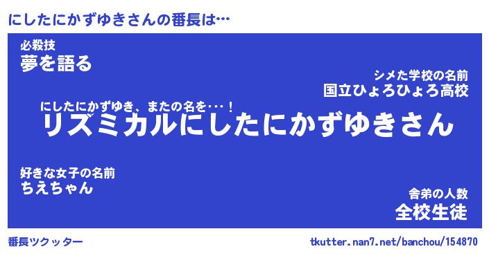 | 肩書あだ名 | 『にしたにかずゆき店長』 |