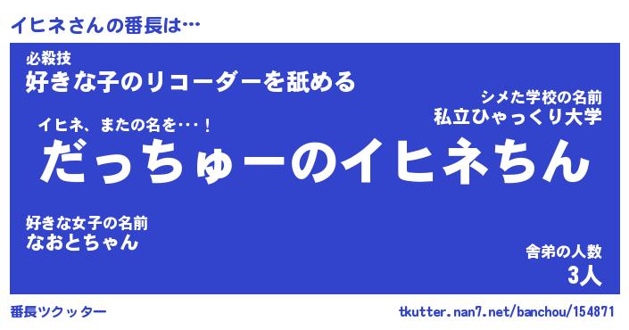 | 意味不明あだ名 | 『ペロリンイヒネ』『イヒネフォーエバー』 |
