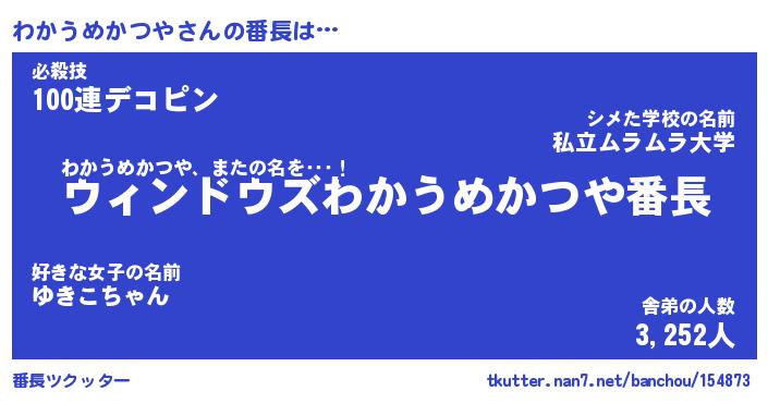 | ヒーロー風カッコイイあだ名 | 『スーパーワカウメカツヤ』 |
