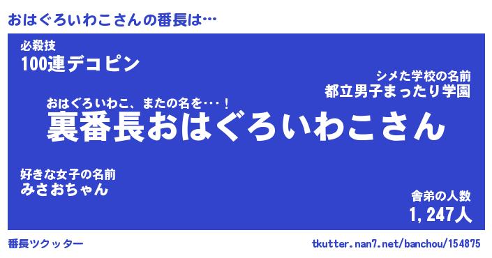 | ヒーロー風カッコイイあだ名 | 『スーパーオハグロイワコ』 |