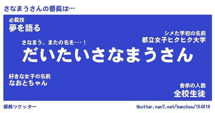 | 意味不明あだ名 | 『ペロリンさなまう』『永久保存さなまう』 |