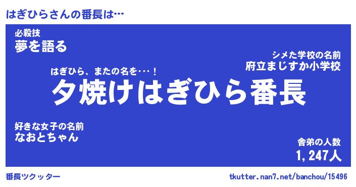 | 意味不明あだ名 | 『ペロリンはぎひら』『永久保存はぎひら』 |