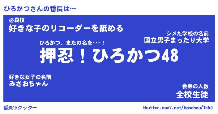 | 意味不明あだ名 | 『ペロリンひろかつ』『永久保存ひろかつ』 |