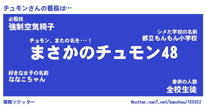 | 意味不明あだ名 | 『ペロリンチュモン』『永久保存チュモン』 |