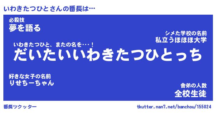 | ヒーロー風カッコイイあだ名 | 『スーパーイワキタツヒト』 |