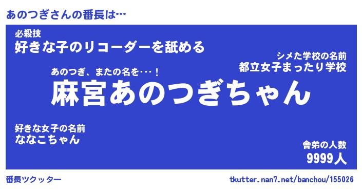 | 意味不明あだ名 | 『ペロリンあのつぎ』『永久保存あのつぎ』 |