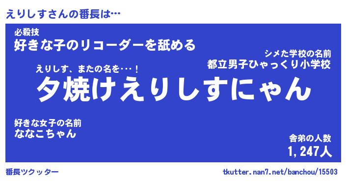 | 肩書あだ名 | 『えりしすCEO』『えりしす大統領』 |