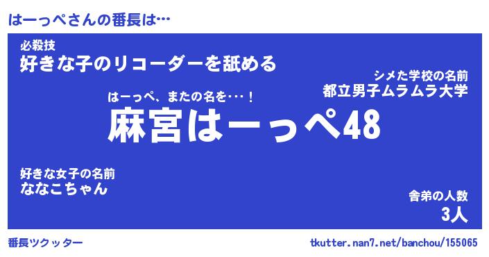 | 意味不明あだ名 | 『ペロリンはーっぺ』『永久保存はーっぺ』 |