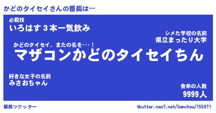 | 肩書あだ名 | 『かどのタイセイ店長』 |