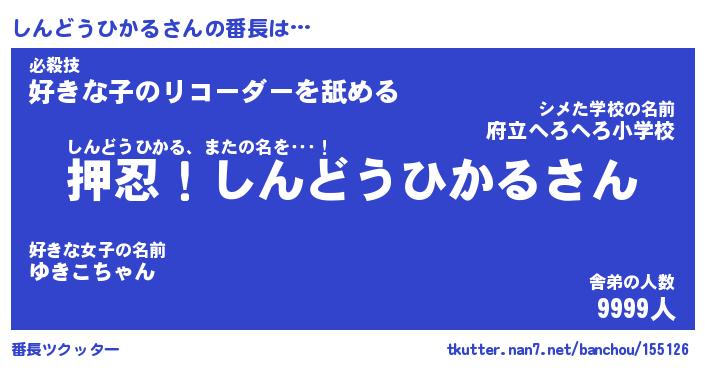 | 意味不明あだ名 | 『ペロリンしんどうひかる』 |