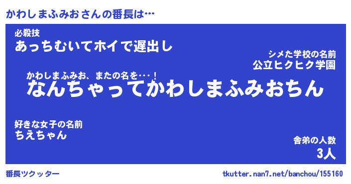 | 肩書あだ名 | 『かわしまふみお御曹司』 |