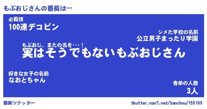 | 肩書あだ名 | 『もぶおじ店長』『もぶおじ総理大臣』 |