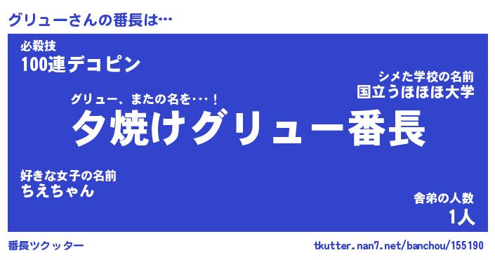 | ヒーロー風カッコイイあだ名 | 『スーパーグリュー』『黄金騎士グリ』 |