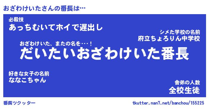 | ピコ太郎風あだ名 | 『オコ次郎』『ピオ二郎』『オザ次郎』 |