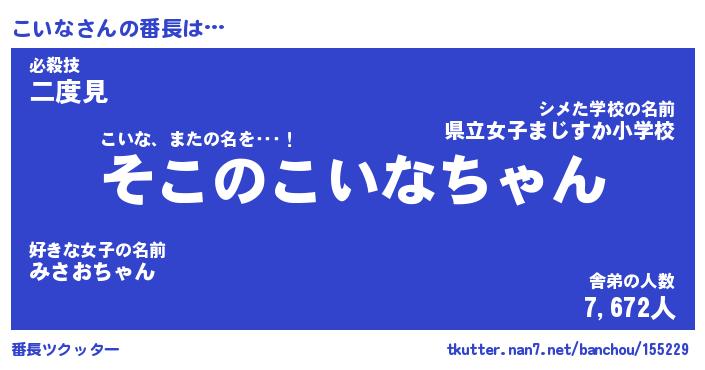 | ヒーロー風カッコイイあだ名 | 『スーパーコイナ』『ウルトラこいなマン』 |