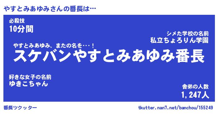 | 肩書あだ名 | 『やすとみあゆみ店長』 |