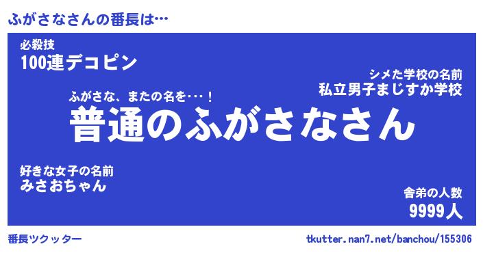 | ヘコむあだ名 | 『ふがもー』『つくし』『ふがぷりん』 |